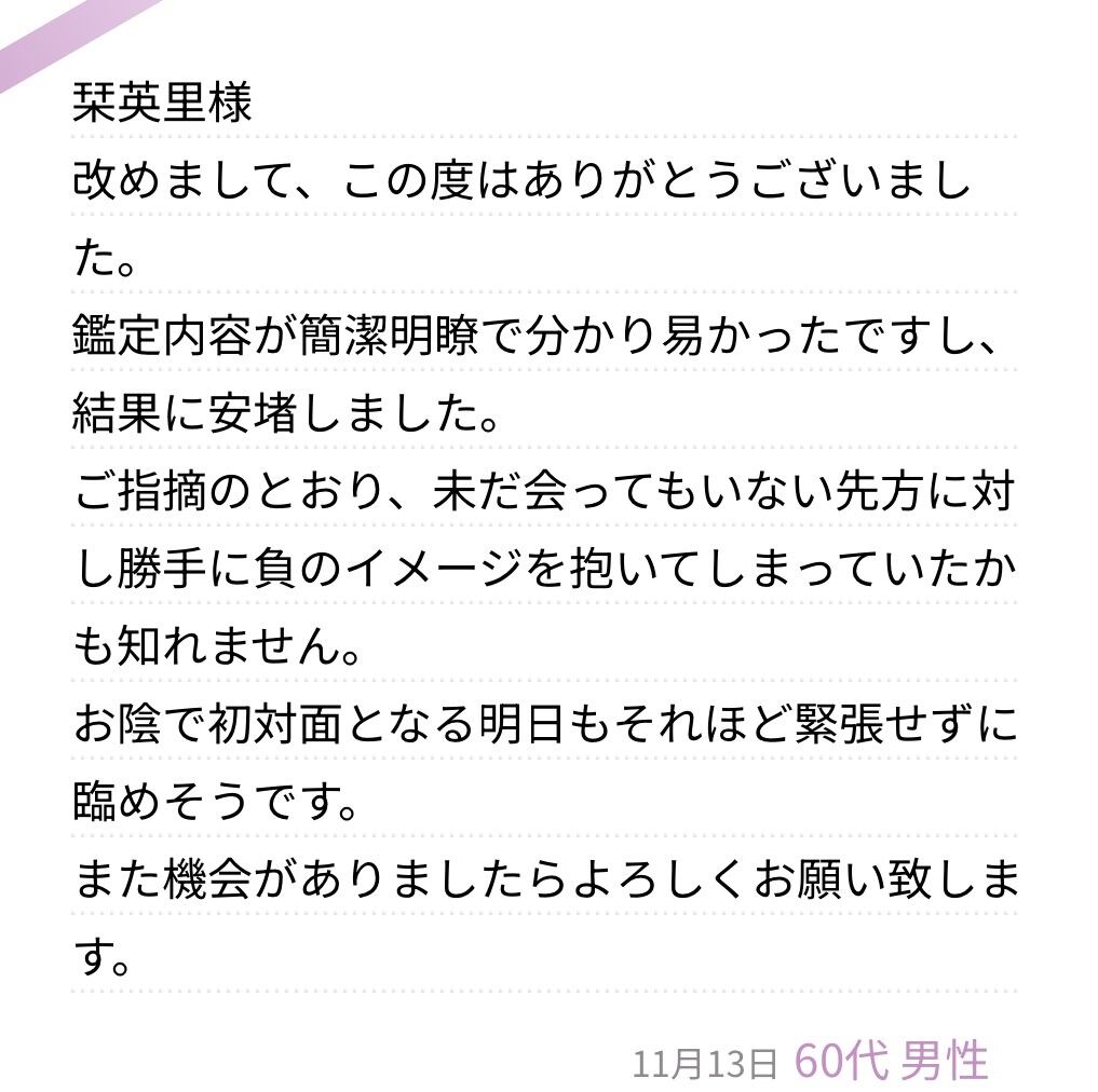 できるだけ詳しく教えてくださると、より深くリーディングできます。